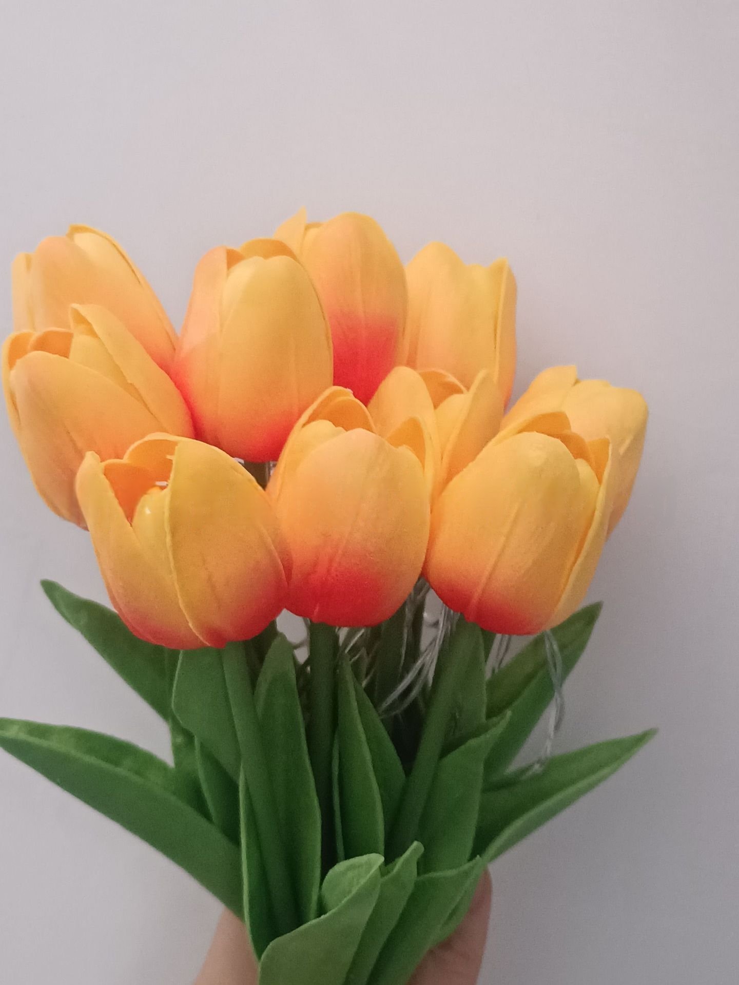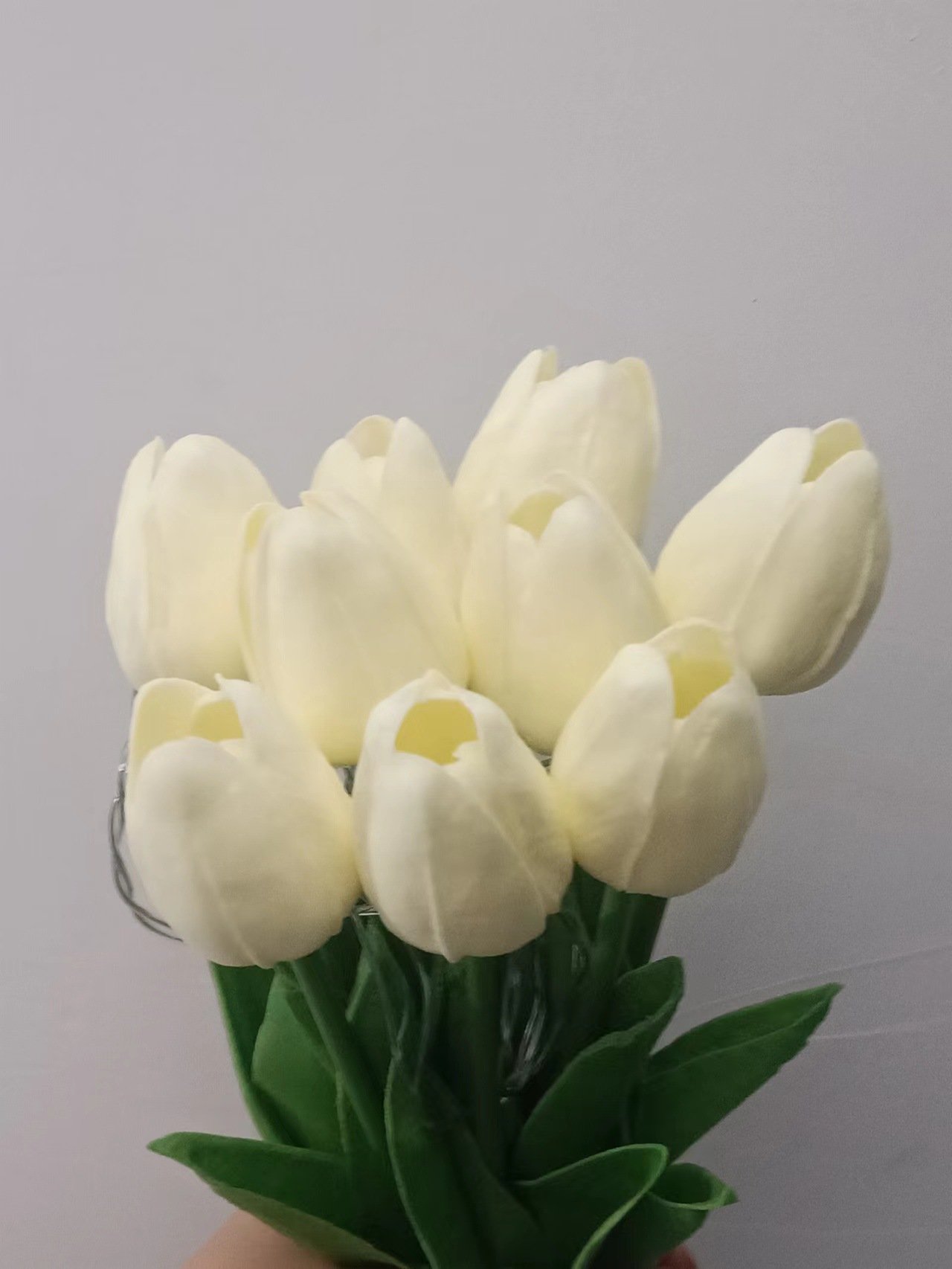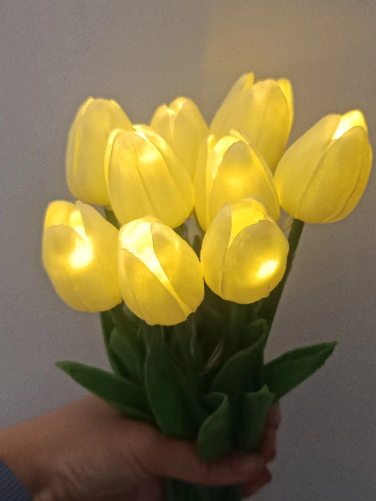 Each bunch comes with 10 or 15 realistic tulip flowers, powered by safe ≤36V battery packs, creating a warm and romantic glow. Made from durable PE material, the lamp is lightweight, long-lasting, and ideal for everyday use.
